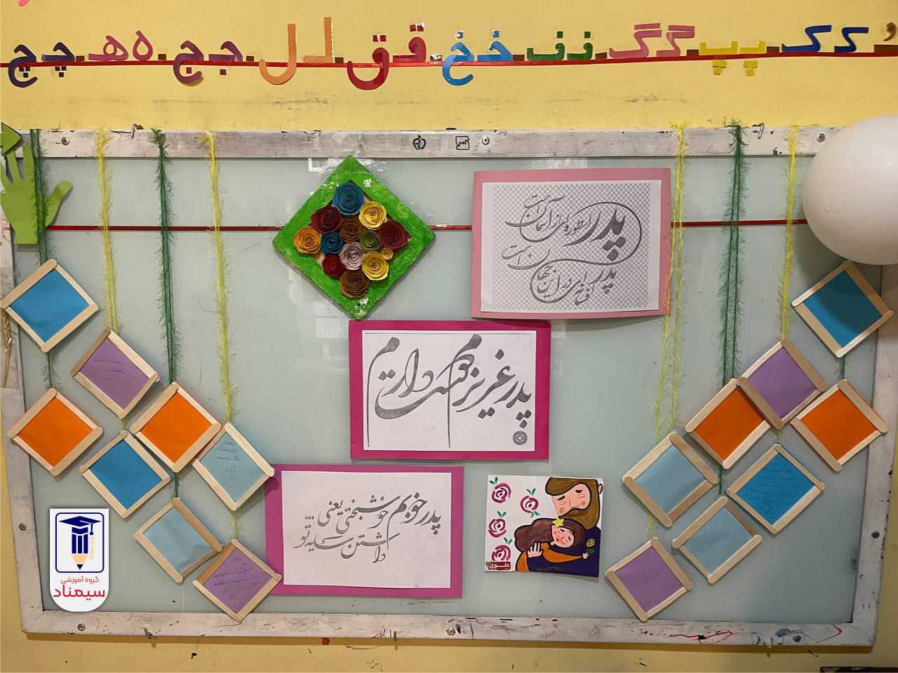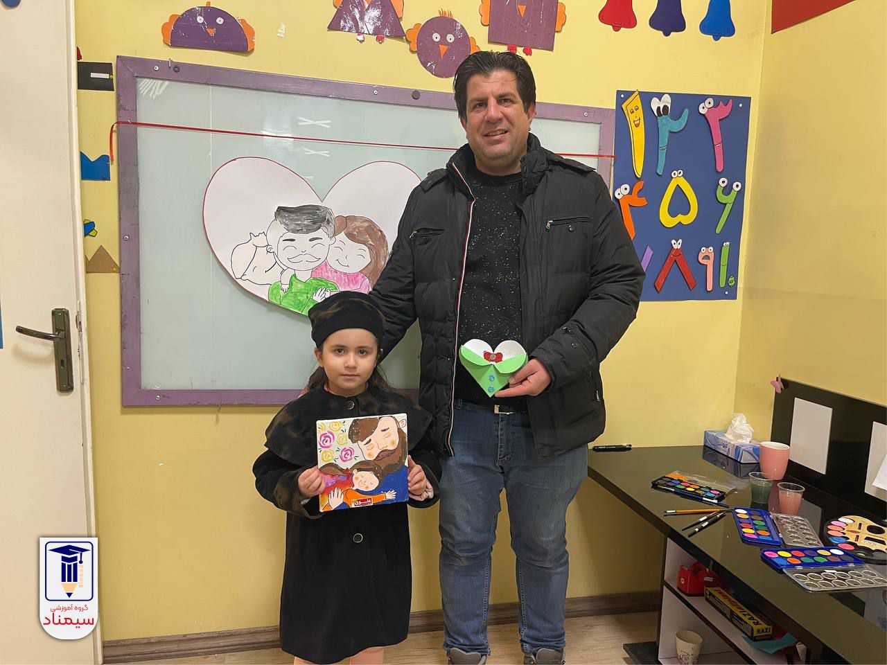 پریسا حسین زاده، معلم نقاشی این پیش دبستان نیز در خصوص نمایشگاه نقاشی اظهار کرد: نمایشگاه نقاشی به مناسبت روز پدر برگزار شد و بیش از ۲۵۰ بوم نقاشی پدر و فرزندی به مناسبت روز پدر، به پدران اهداء شد و همچنین ایده های جذابی در این نمایشگاه برای پدران طراحی شده بود و در برخی از کلاس ها، مشاغل پدران طراحی شده بود ونوآموزان به همراه پدران خود این نقاشی ها را رنگ آمیزی کردند.