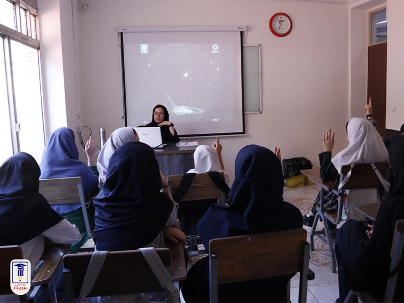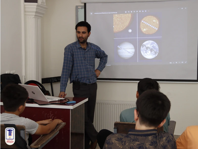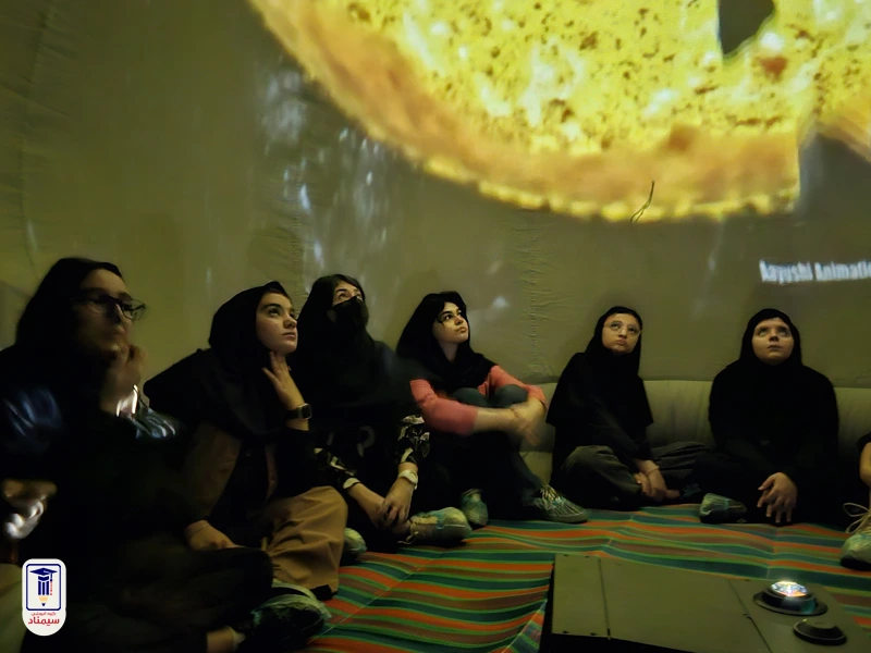 همچنین با دستگاه پلانتاریوم نمایی از ستارگان و سیارهها و دیگر پدیدههای آسمانی به منظور آشنایی بیشتر با مباحث نجوم و سرگرمی برای دانش آموزان نمایش داده شد .