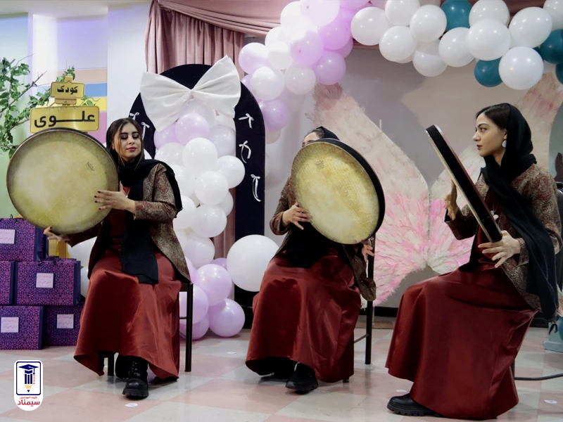 بخش دیگری از مراسم با اجرای گروه دف‌نوازی همراه بود. نواهای ملکوتی دف که در فضایی روحانی طنین‌انداز شد، جلوه‌ای خاص به این جشن معنوی بخشید. مادران با نگاه‌هایی آکنده از احساس، لحظات زیبای این اجرا را به نظاره نشسته بودند و با چشمانی پر از افتخار شاهد عبور دخترانشان از مرحله‌ای جدید از زندگی بودند.
