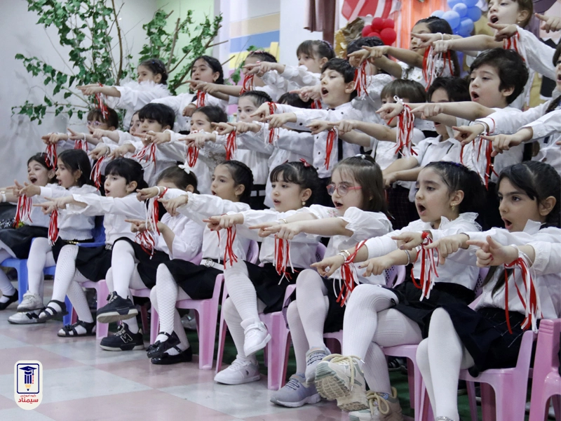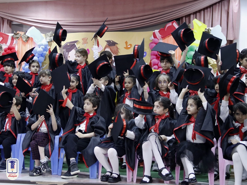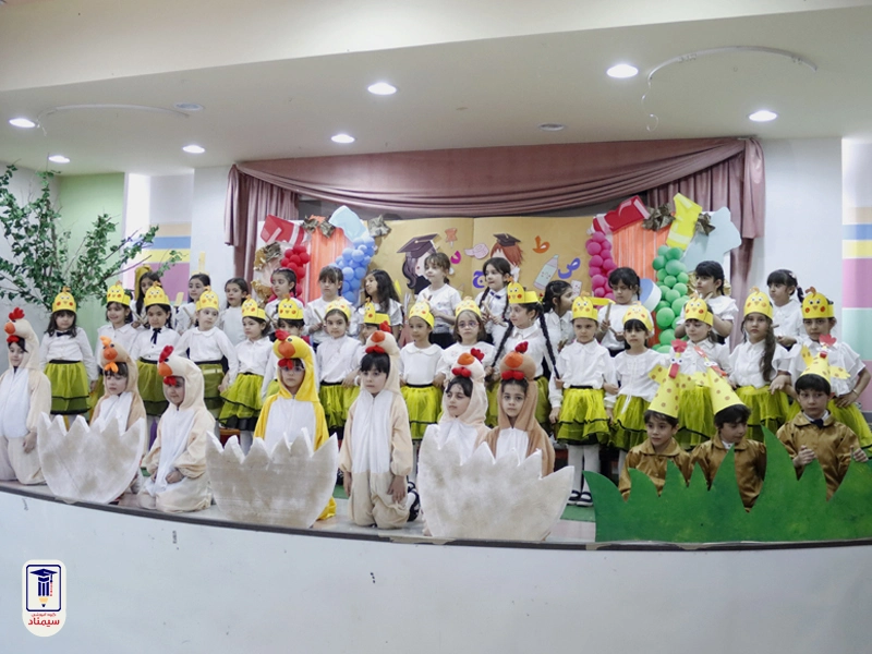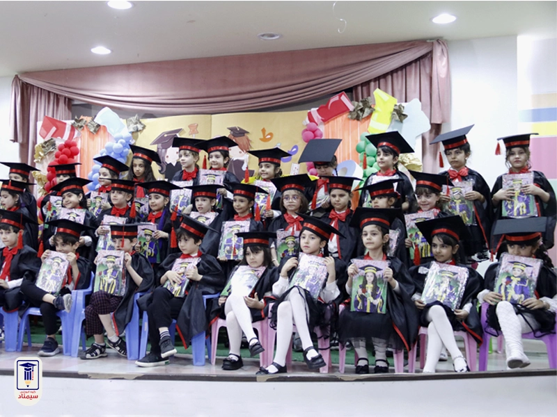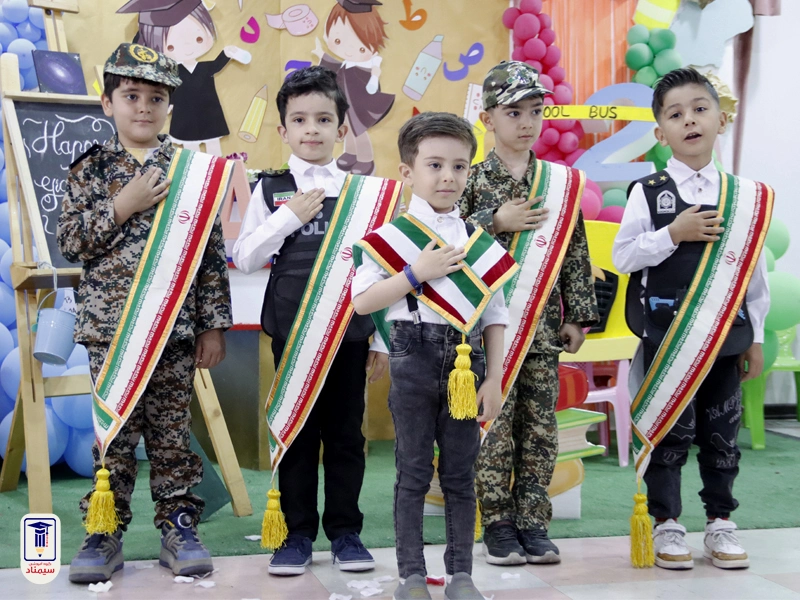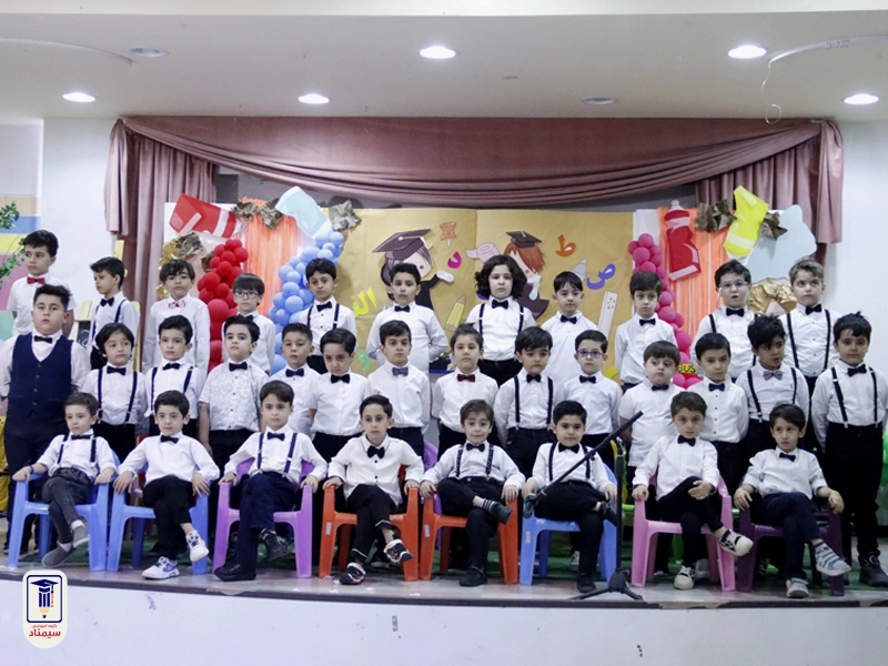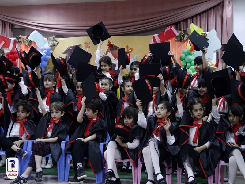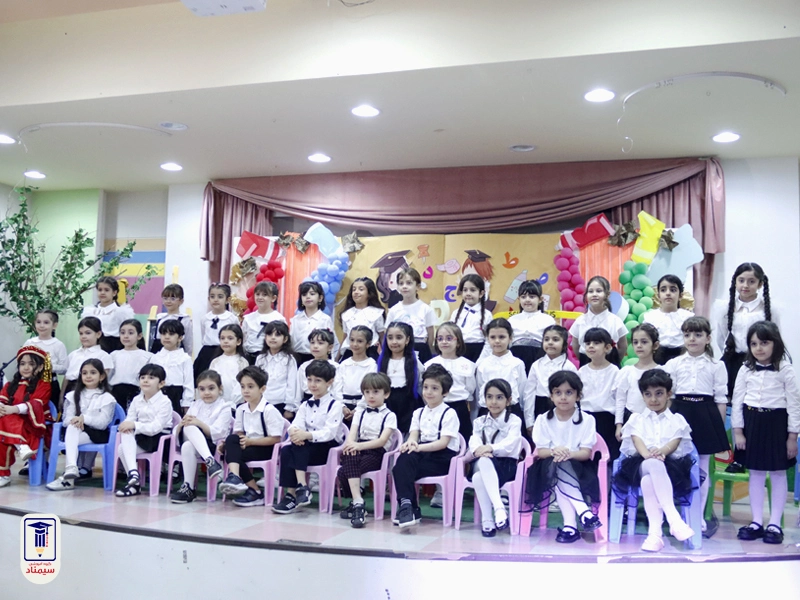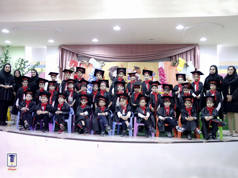 نونهالان مراسم پایان تحصیلی خود را در فضایی شاد با پرتاب کلاه های خود به صورت دسته جمعی و منظم اجرا کردند و در پایان عکس های یاد بود و دسته جمعی از این غنچه های نوشکفته گرفته شد .