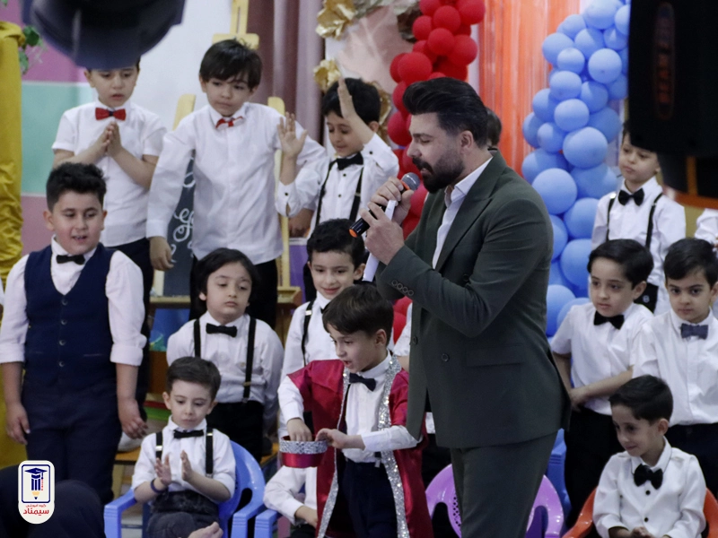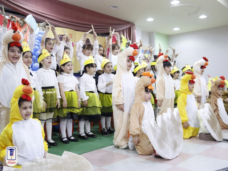 در این مراسم که با حضور پرشور والدین محترم نونهالان عزیز مجموعه همراه بود نونهالان سرودهای گروهی خود را به زبان های انگلیسی و فارسی را با هدایت مربیان خود اجرا کردند که با استقبال گرم حضار همراه شد .