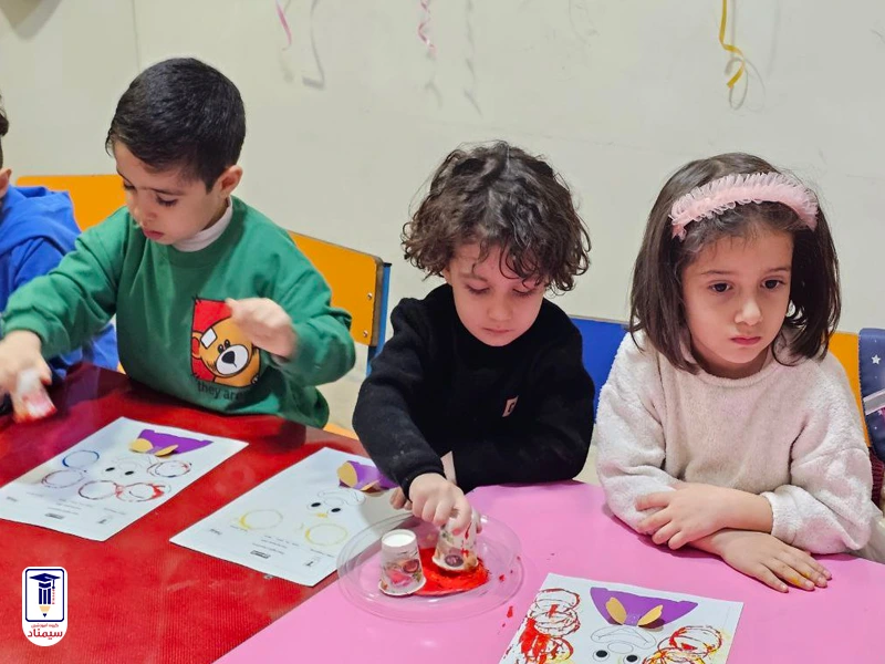 یکی از بخشهای هیجانانگیز این کارگاه، ساخت کاردستی دلقک بود. کودکان در این بخش با هدایت مربیان، به دلقکهای کاغذی موهای رنگی اضافه کردند و همزمان نام رنگها را به زبان انگلیسی یاد گرفتند. مربیان با اشاره به رنگها و تکرار کلمات انگلیسی آنها، کودکان را تشویق کردند تا این کلمات را همراه با خودشان تکرار کنند. این روش، نهتنها باعث تقویت حافظه بچهها شد، بلکه در فضایی شاد و خلاقانه، مفاهیم جدیدی را به آنها آموزش داد.