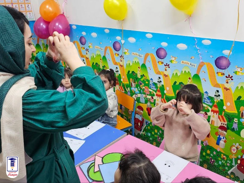 در بخش دیگر کارگاه، مربیان با شعرهای شاد و جذاب، بچهها را با ریتم زبان انگلیسی آشنا کردند. همراه با موسیقی و حرکات بدنی، کودکان با کلمات ساده و کاربردی آشنا شدند و لحظاتی پر از نشاط و انرژی را تجربه کردند.