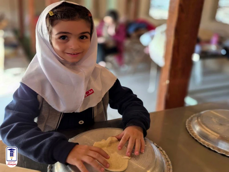 روز زیبای دانشآموزان با ورزش صبحگاهی آغاز شد تا با نشاط و سرزندگی آماده ماجراجویی شوند. پس از خوردن صبحانه، آنها وارد کارگاه نانوایی شدند. مربی کارگاه با ارائه توضیحاتی درباره مراحل پخت نان سنتی، کودکان را به دنیای نانواها برد و سپس نانوایان کوچک علوی دستبهکار شدند. این تجربه عملی و به یاد ماندنی، یادگیری نشانه «ن» را برای دانشآموزان به یکی از خاطرهانگیزترین آموزش های دوران تحصیلیشان تبدیل کرد.