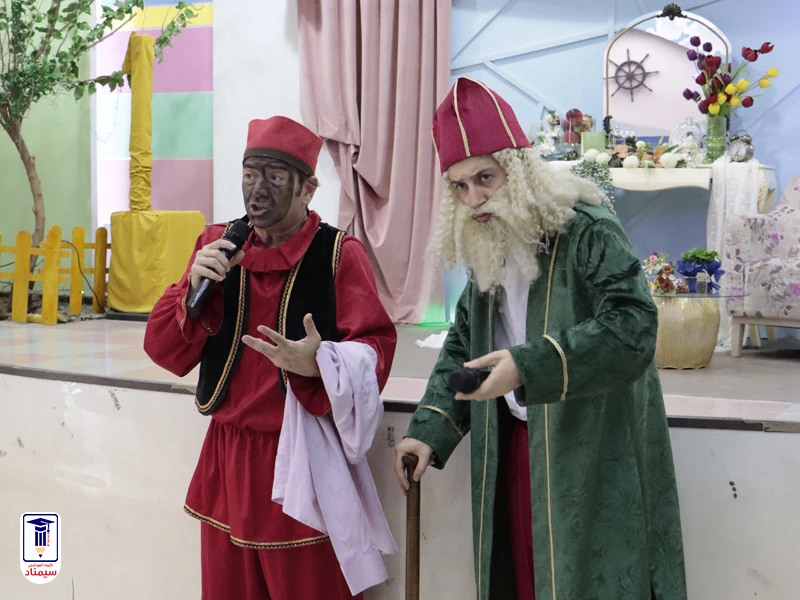 یکی از جذابترین بخشهای این ویژهبرنامه، اجرای نمایش سنتی عمو نوروز و حاجی فیروز بود. این نمایش با روایت قصههای کهن ایرانی درباره نوروز، پخش موسیقیهای شاد و تعامل مستقیم با دانشآموزان، فضایی پرانرژی و مفرح را در مدرسه ایجاد کرد.