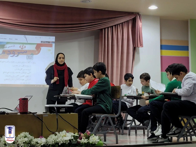 در بخش اول این جلسه که با حضور مدیران، معاونین و معلمان شعب برگزار شد، ابتدا معلمان پایه اول با تدریس درس علوم با موضوع “آشنایی با قسمتهای مختلف گیاه” و سپس معلمان پایه پنجم با تدریس درس فارسی و با موضوع ” آشنایی با پرچم ایران” به ارائه تدریس پرداختند. این بخش از برنامه بهعنوان یک فرصت آموزشی برای تبادل تجربیات و روشهای تدریس میان معلمان مورد توجه قرار گرفت. استفاده فعال از دانش آموزان در فرآیند تدریس، گروهبندی های جالب و هدفمند، استفاده از ابزارهای آموزشی به صورت کاربردی و هدفمند، مشارکت همه معلمان هم پایه برای ارائه تدریس و … از ویژگی های تدریس های ارائه شده بود. این ارائههای جذاب و خلاقانه معلمان، نشاندهنده تعهد و اشتیاق آنها به آموزش دانشآموزان بود.